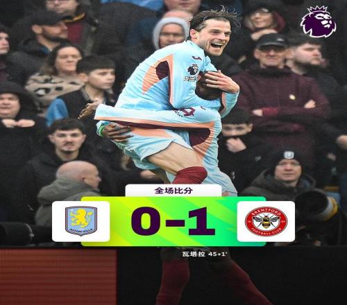 最终,阿斯顿维拉0-1输给了布伦特福德。
